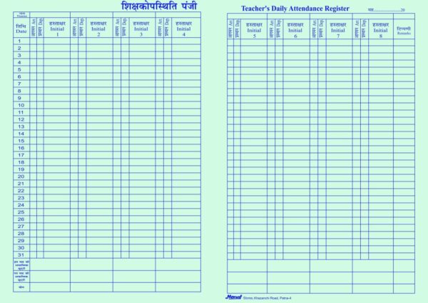1 Year Teachers Attendance Register – General Kut Binding