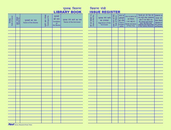 - Monaf Library Book Issue Register – 4 Q also known as पुस्तक वितरण विवरण पंजी